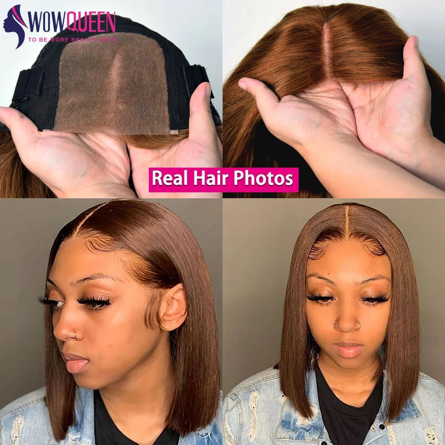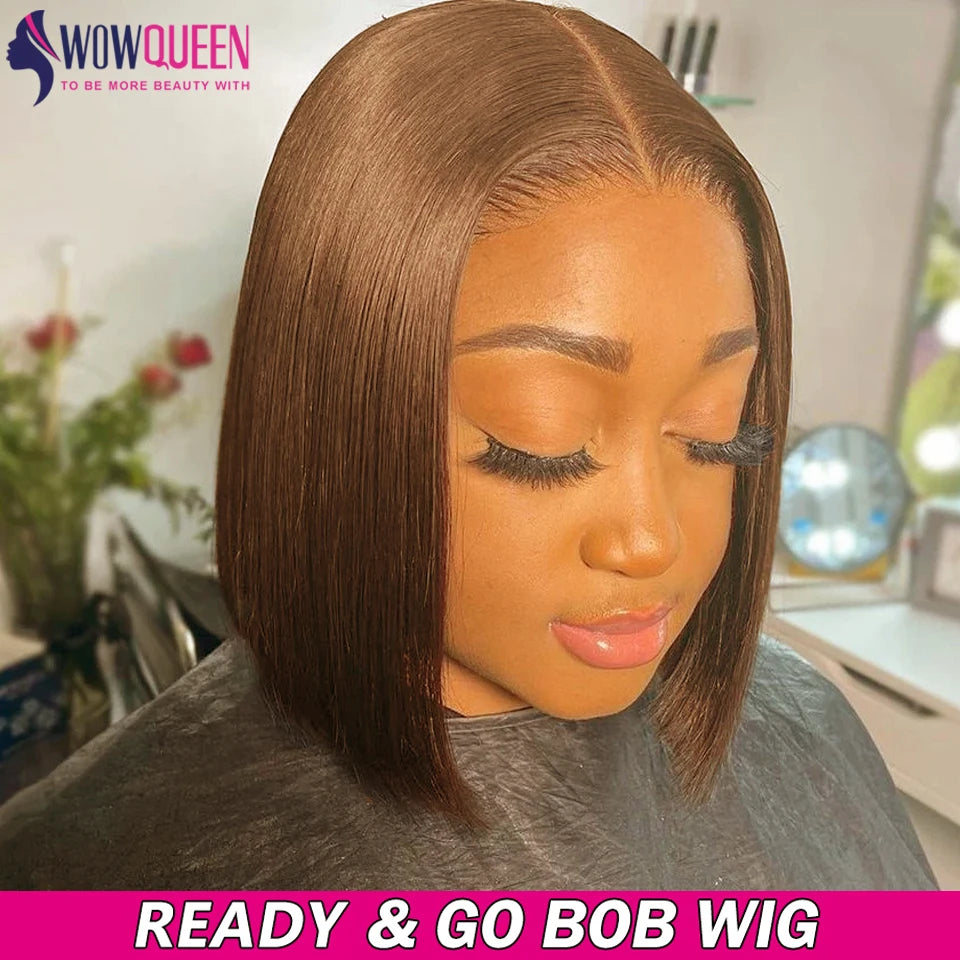 #4 Chocolate Brown Wig Bob Glueless Wig Human Hair Ready To Wear 180 Density Straight Wig Invisible 4x4 Closure Wigs For Women#4 Chocolate Brown Wig Bob Glueless Wig Human Hair Ready To Wear 180 Density Straight Wig Invisible 4x4 Closure Wigs For Women- Regular price